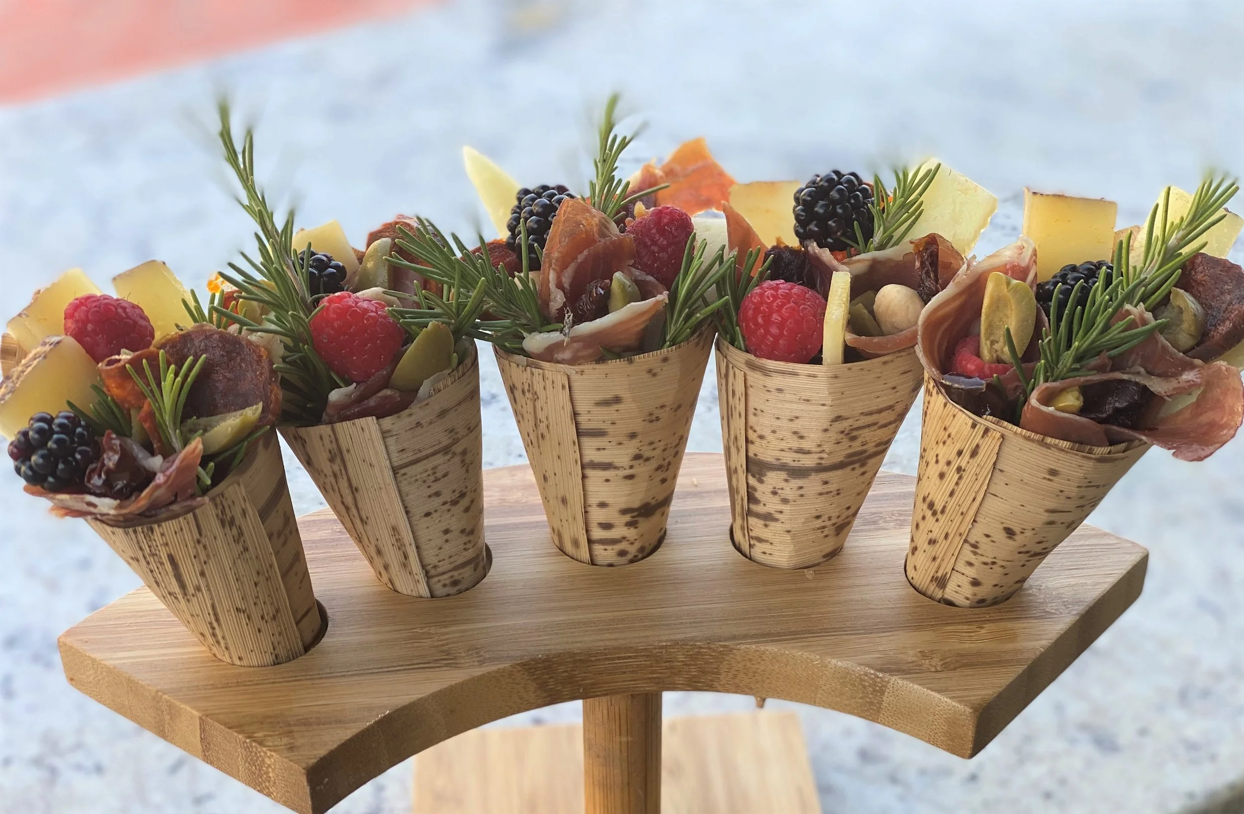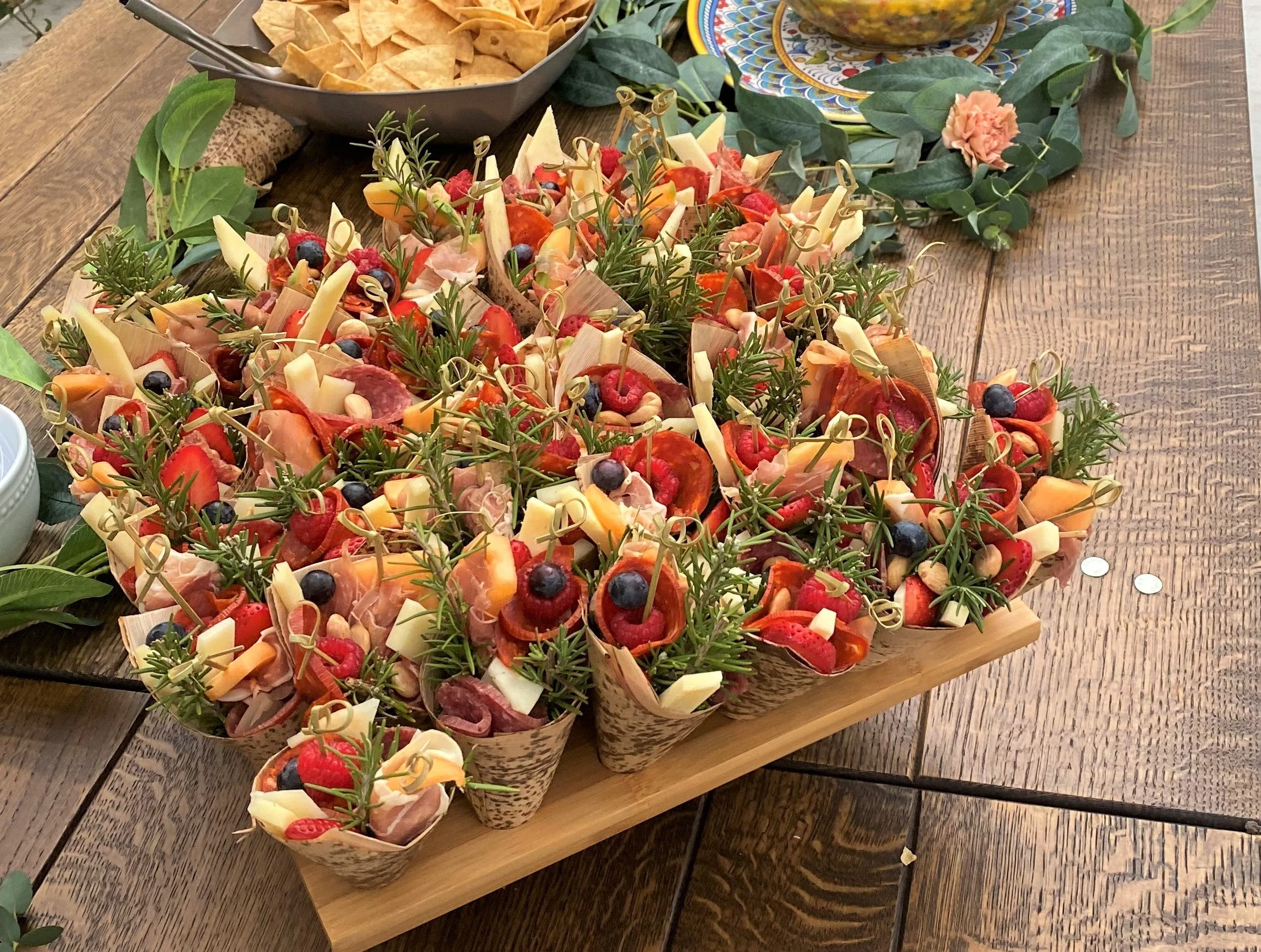 Taco Catering with a wide variety of appetizers like these charcuterie cones
